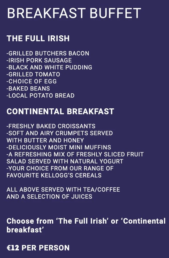 Select from an array of delicious options including a full Irish breakfast or a variety of continental delights, tailored to your group's preferences. - Schedule Your Delivery