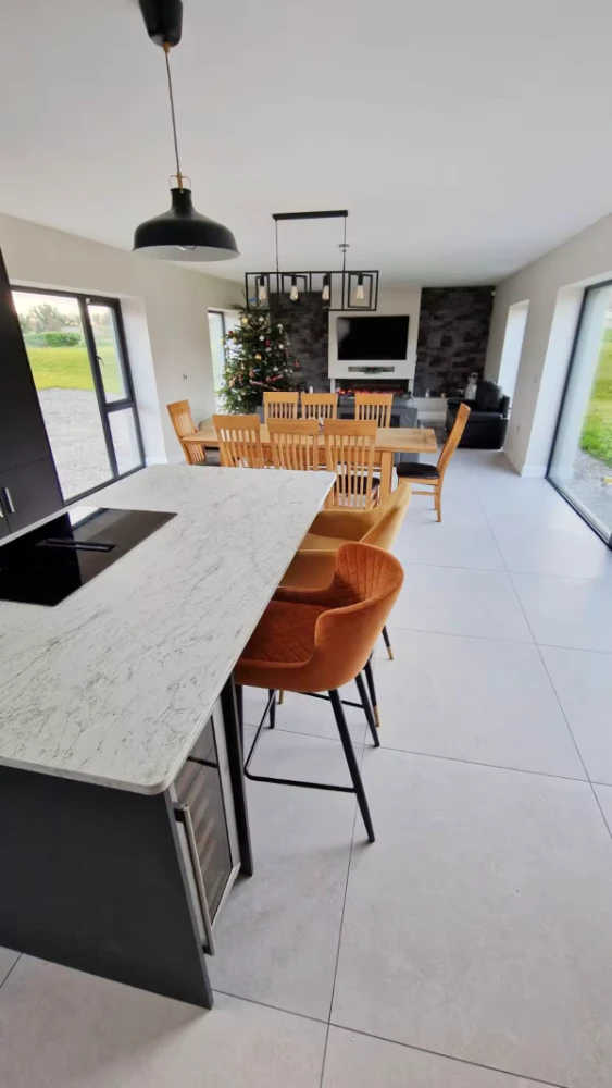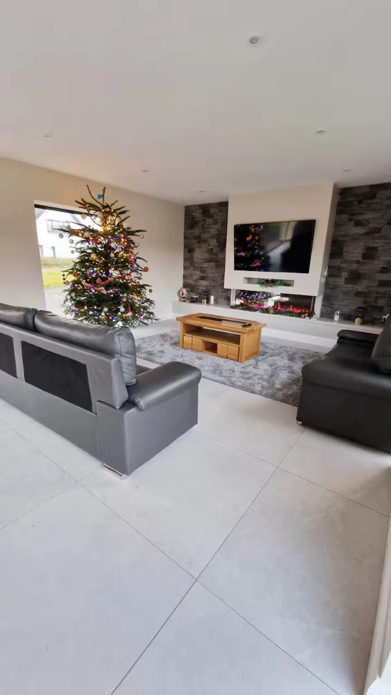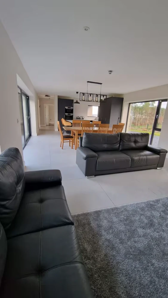 Welcome to the Luxury Sea Mourne View House, a stunning 4-bedroom retreat that perfectly combines modern comfort with breathtaking coastal views. This newly built home is designed to cater to families or groups seeking a relaxing getaway just steps from the shimmering shores of Carlingford Lough. As you step inside, you are greeted by a spacious open-plan living area that is flooded with natural light, thanks to large windows that showcase the panoramic views of the Mourne Mountains and the sea. The stylishly furnished living room invites you to unwind on plush sofas, while the contemporary kitchen is equipped with high-end appliances, making meal preparation a delight.